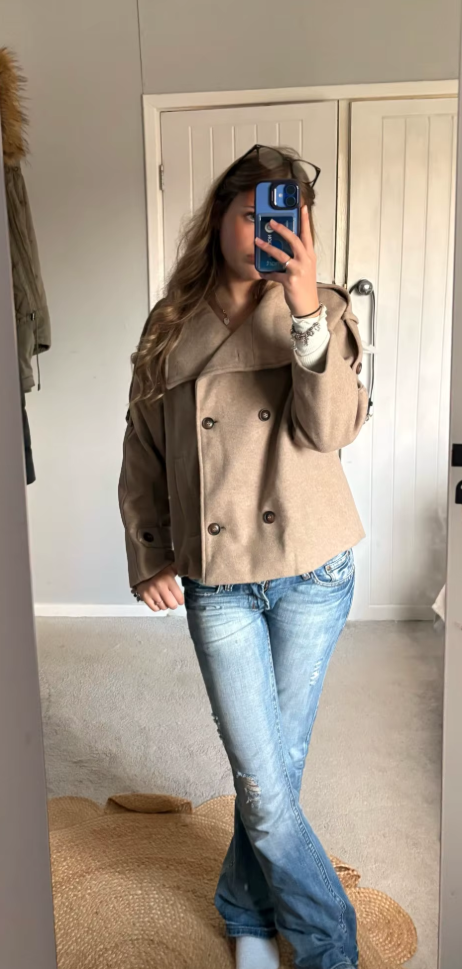 Its warm, tailored fit flatters without trying, wrapping you in that quiet kind of pretty that never asks for attention.