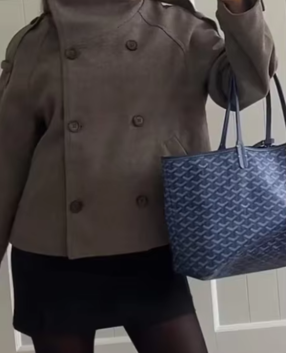 Obsessed with this look! The gray peacoat is such a statement piece. Its design, with the high collar and button details, gives it an elegant look.